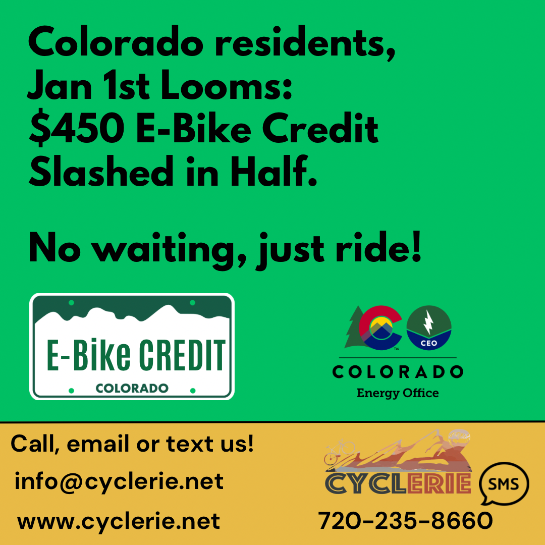 From there we are able to apply discounts and rebates. For all Colorado Residents we subtract $450 - which would bring the total cost of this electric bicycle to: $1,696.94