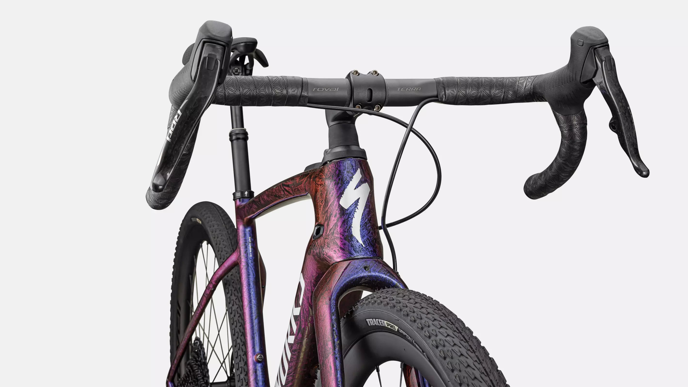 - Roval Terra, carbon, 103mm drop x 70mm reach x 12º flare